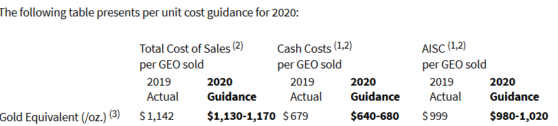 Die All-in sustaining costs ("AISC") für das Quartal betrugen 1.032 US-Dollar pro verkauftem GEO gegenüber 973 US-Dollar pro verkauftem GEO im gleichen Zeitraum im Jahr 2019.