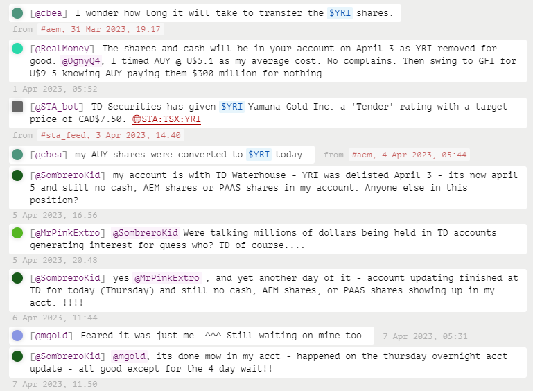 Geduld, Geduld. Bei so einer großen Übernahme dauert es eben seine Zeit, bis die Posten aller (Klein)Aktionäre abgewickelt werden. Und gibt es nicht auch geboosterte Banker? 8| Drüben bei ceo.ca haben sie auch gejammert: