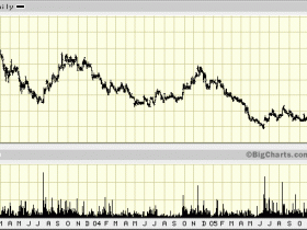 Zum einen ist der langfristige Aufwärtstrend erreicht, der im Frühjahr 2000 seinen Anfang genommen hat. Dann ist der Kurs auf der Abwärtstrendlinie aufgesetzt, der von der "4" der ersten Welle ihren Anfang nimmt. Zusammen ergibt sich bei 30 australischen Cents ein sehr, sehr starker Widerstand.