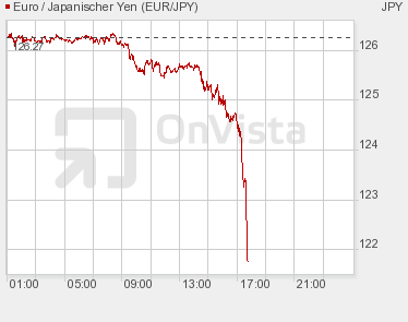 • Alles fällt. Blutrot. Nur eines steigt. Die 5 Jahres CDS Spreads.