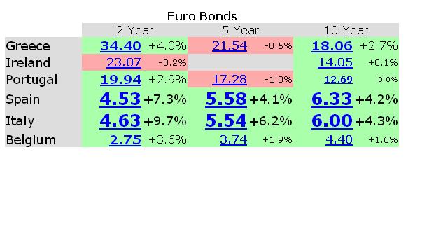 Trotzdem bin ich skeptisch, dass es so schnell zu Ende geht. Weiß auch nicht warum. Sowohl die US-Debatte über die Schuldenobergrenze als auch die aktuelle EU-Debatte über die Staatsverschuldung verschiedener Euroländer sieht mir zu sehr KONSTRUIERT aus. Das hat den Anschein, als ob eine unbekannte dritte Seite im Hintergrund gezielt für Panik sorgt, und zwar an den Märkten und bei den Privaten.