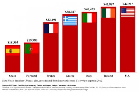 1.Die Schulden pro Kopf der US Bürger sind höher selbst gegenüber den Griechen.