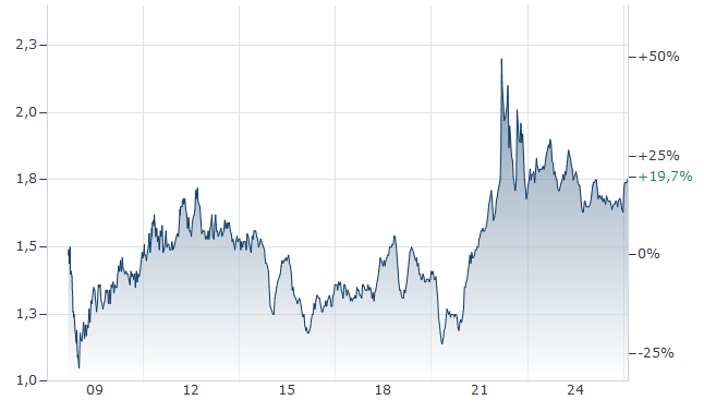 Heute 1L Super 1,66€ gesehen - leider Tank voll