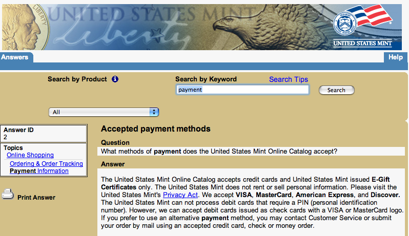 Welche Möglichkeiten der Zahlung werden bei der U.S. Mint bei internationalem Versand akzeptiert?
