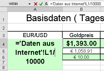 Grüne Felder sind für Eingaben des Benutzers gedacht. Eventuell kann der ein oder andere mit dem Tabellenblatt