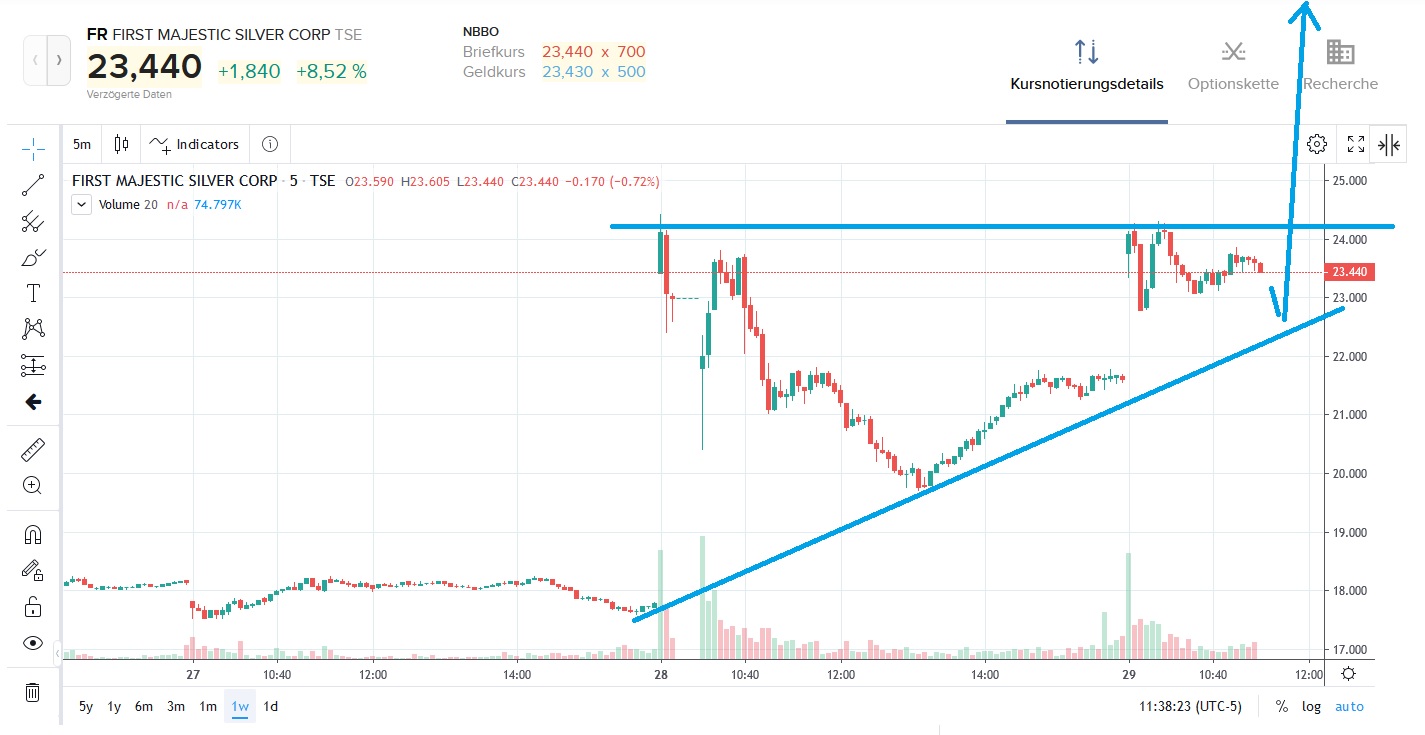 Beeindruckend wie der Kurs immer wieder zurückkommt. Gegen Tagesschluss wieder stark ansteigend.