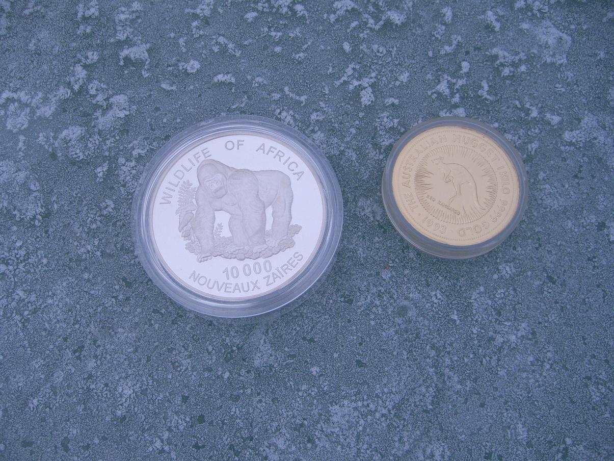 Ich such zurzeit die Münzaustellungstücke z.b.für Banken. So eine Kilo Kookaburra Münze habe ich davon. Ist wohl aus Alu und nur das Kookaburra-Motiv wurde geprägt und ist auch nur 250g schwer.