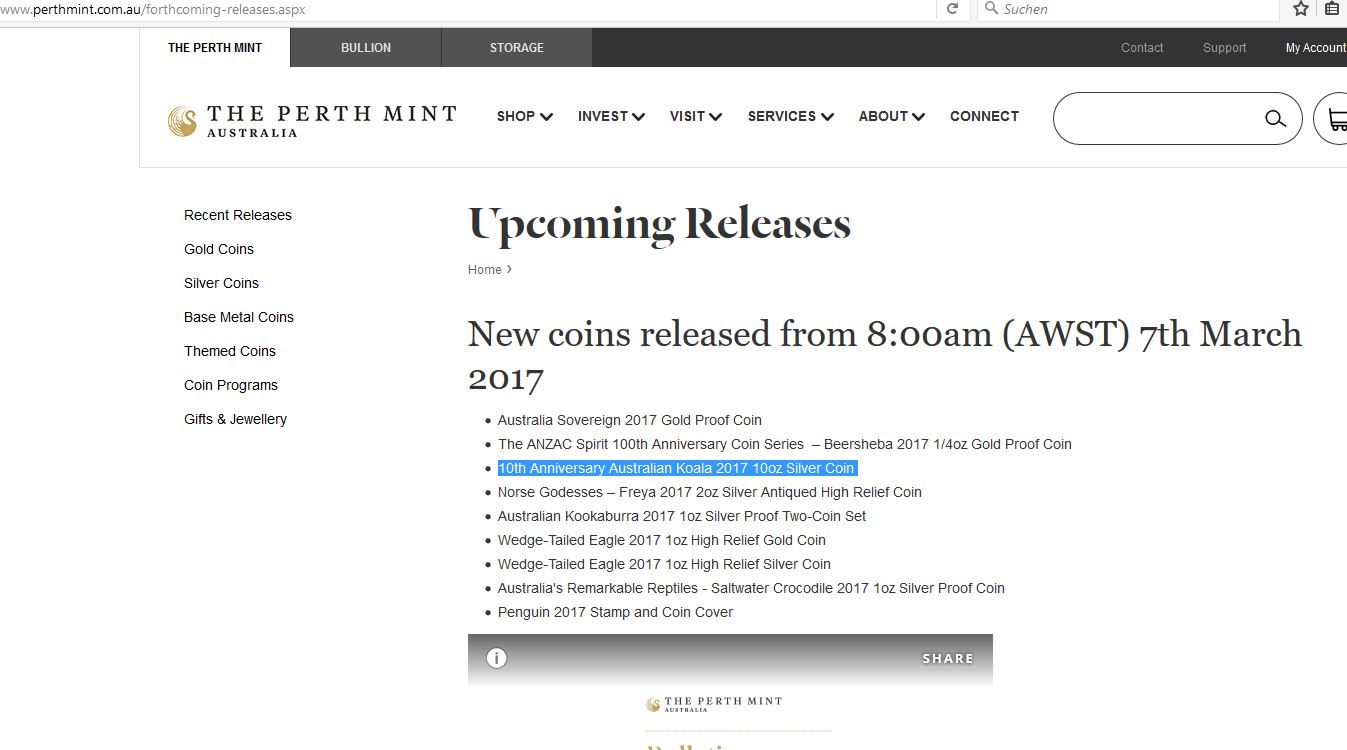 Nun hat die Perth Mint die Ausgabe im März auf Ihrer Seite hochoffiziell bestätigt: