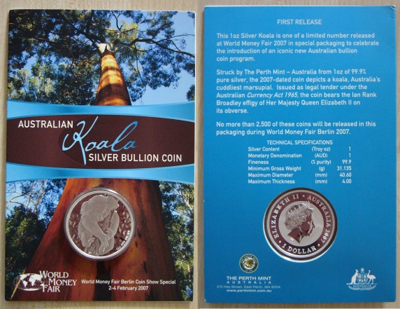 2011 wurde auf der WMF-Berlin der erste 1oz Silber-Koala 2011 mit Privy-Zeichen, Berliner Bär