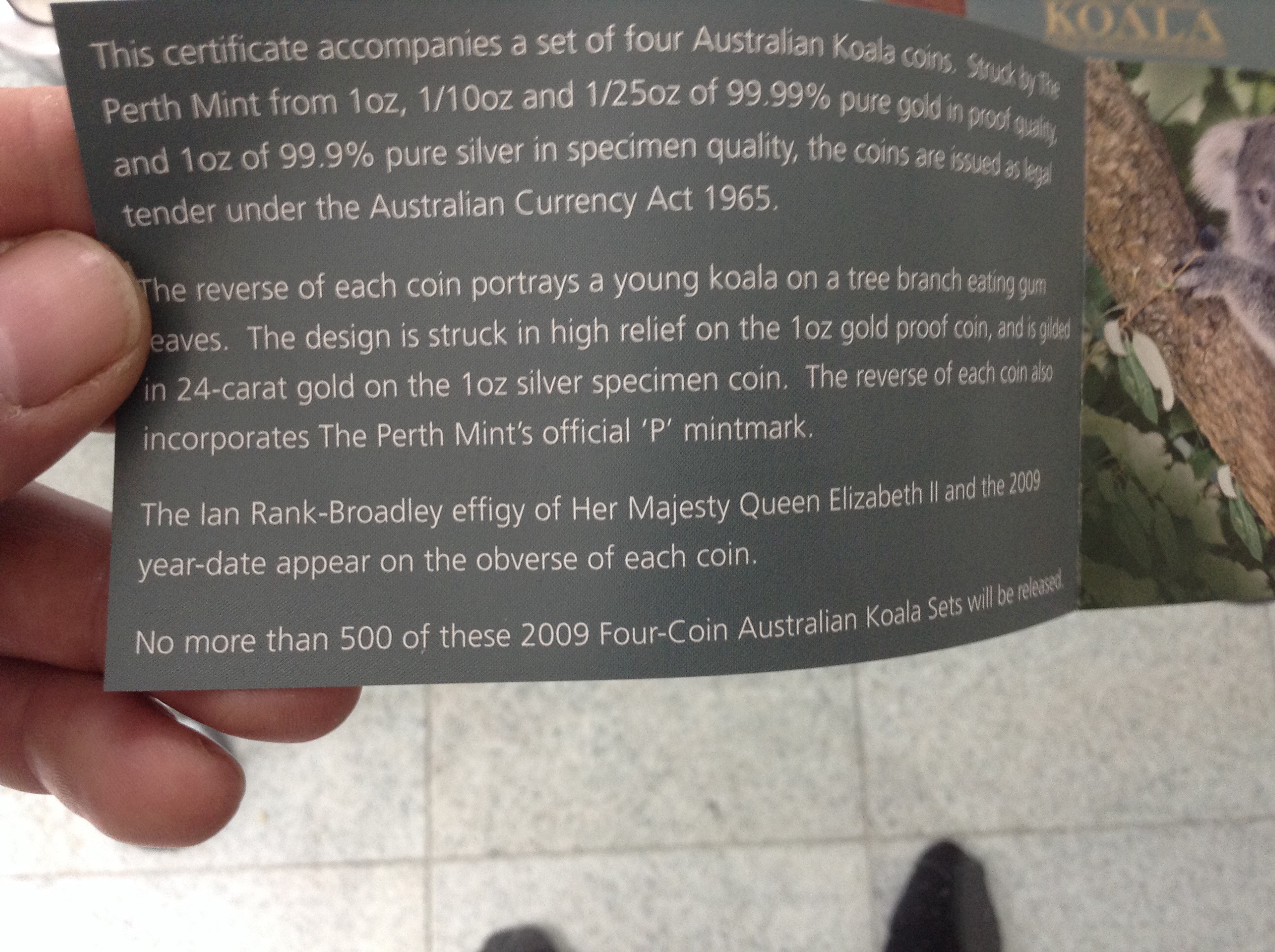 Natürlich ist die 5oz Koala Gold (wie auch die in kommendem Monat erscheindende, deutlich preisgünstigere 1/4 Koala Gold (Neuerscheinung))