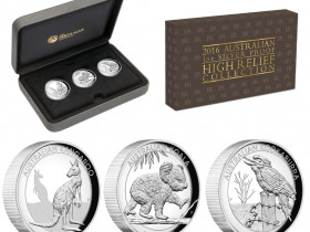 There will be a proprietary Three-Coin High Relief Set (Kooka, Kanga, Koala) only.