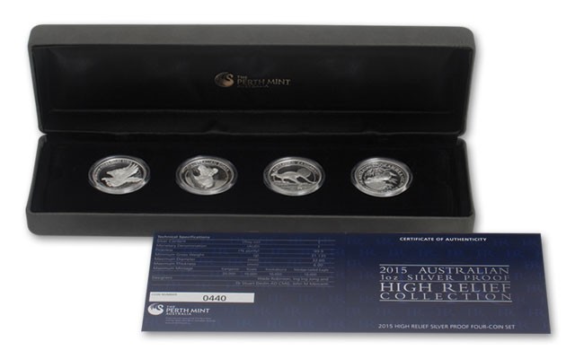 There will be a proprietary Three-Coin High Relief Set (Kooka, Kanga, Koala) only.