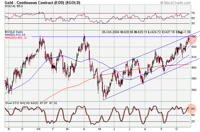 nachdem ich mich recht rar gemacht hatte, finde ich ist es Zeit geworden für ein kleines Update, kurz vor der entscheidenden Marke US$ 430. Fällt sie ? Gibt es wieder ein Rebound in Richtung 400 ? Man weiß es nicht, für beides gibt es charttechnische Hinweise.