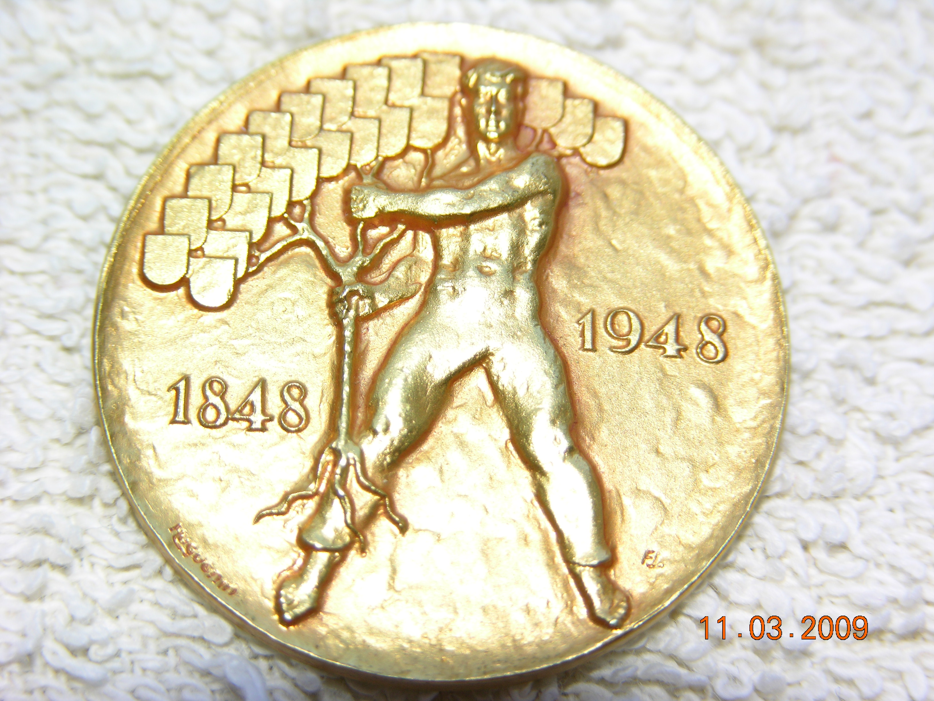 ist ein Mann mit einem Baum oder sowas abgebildet und die Jahreszahl 1948 1948