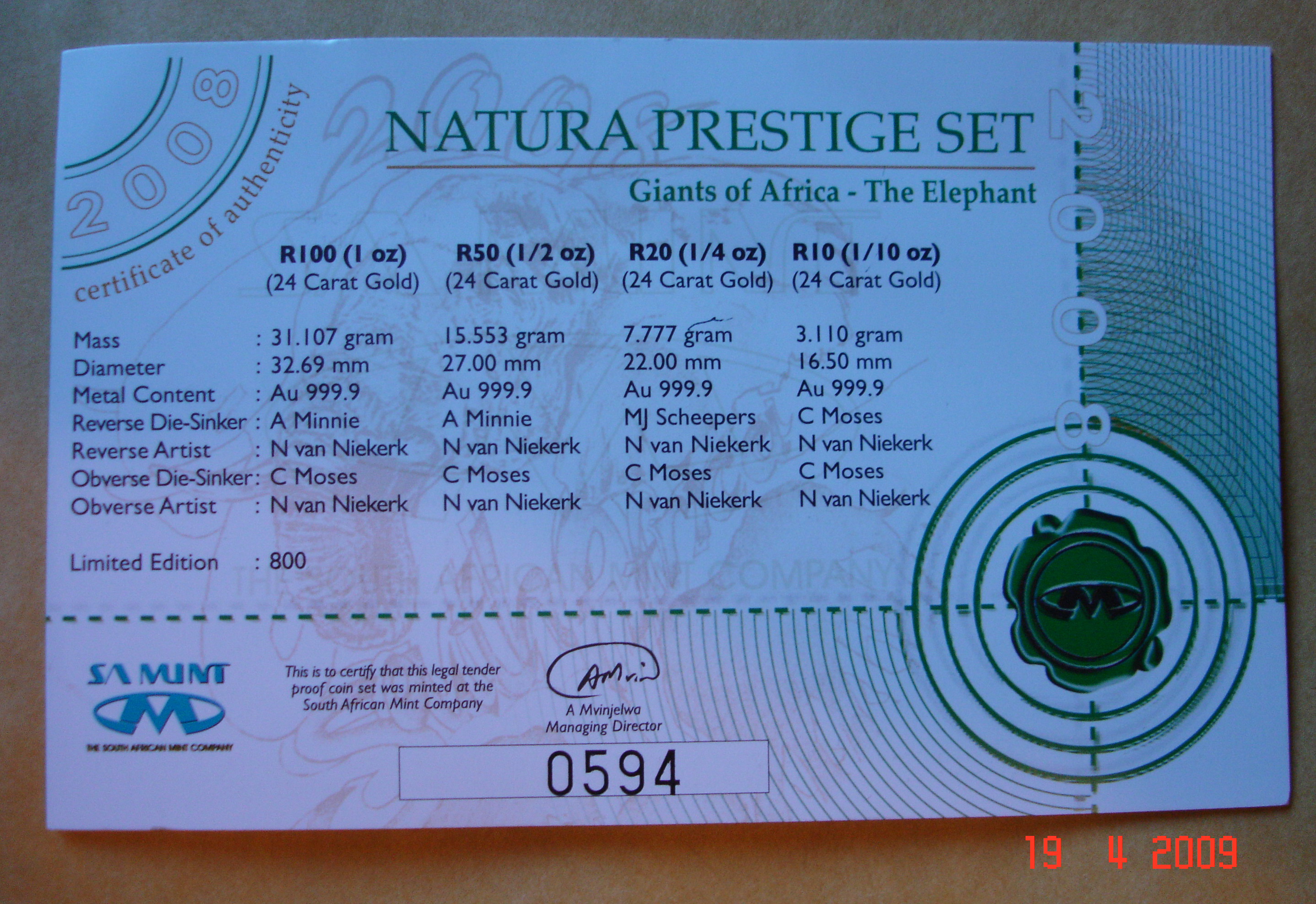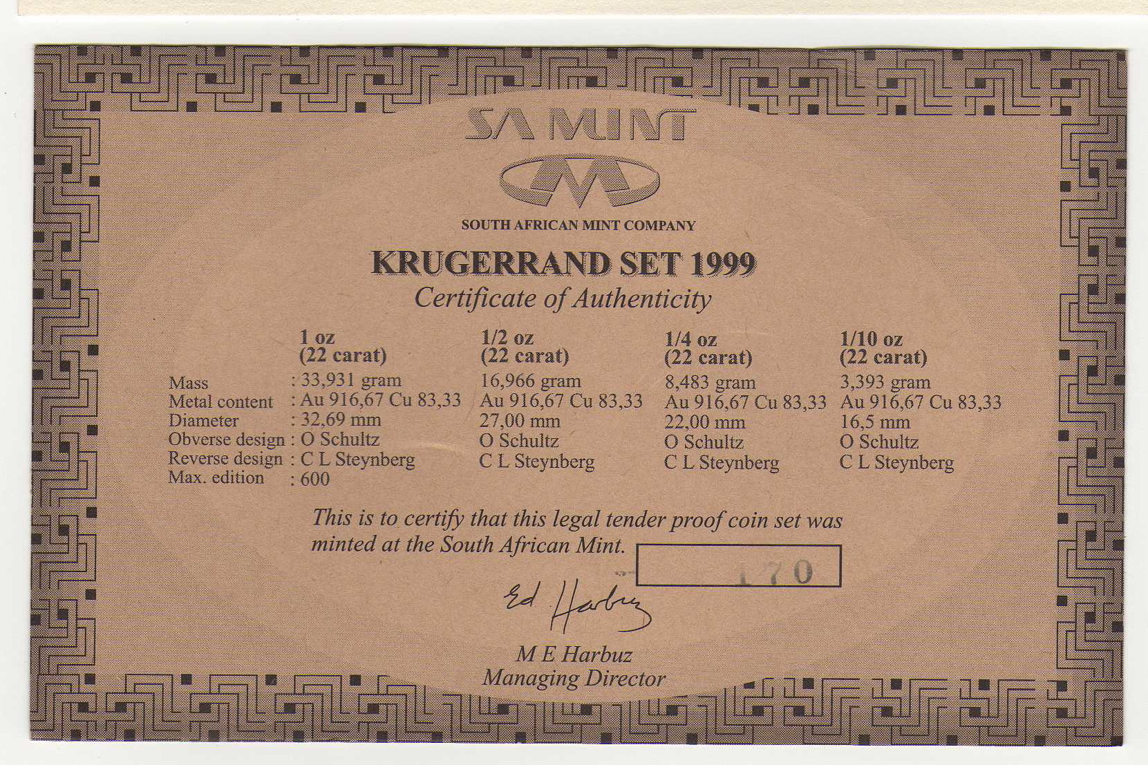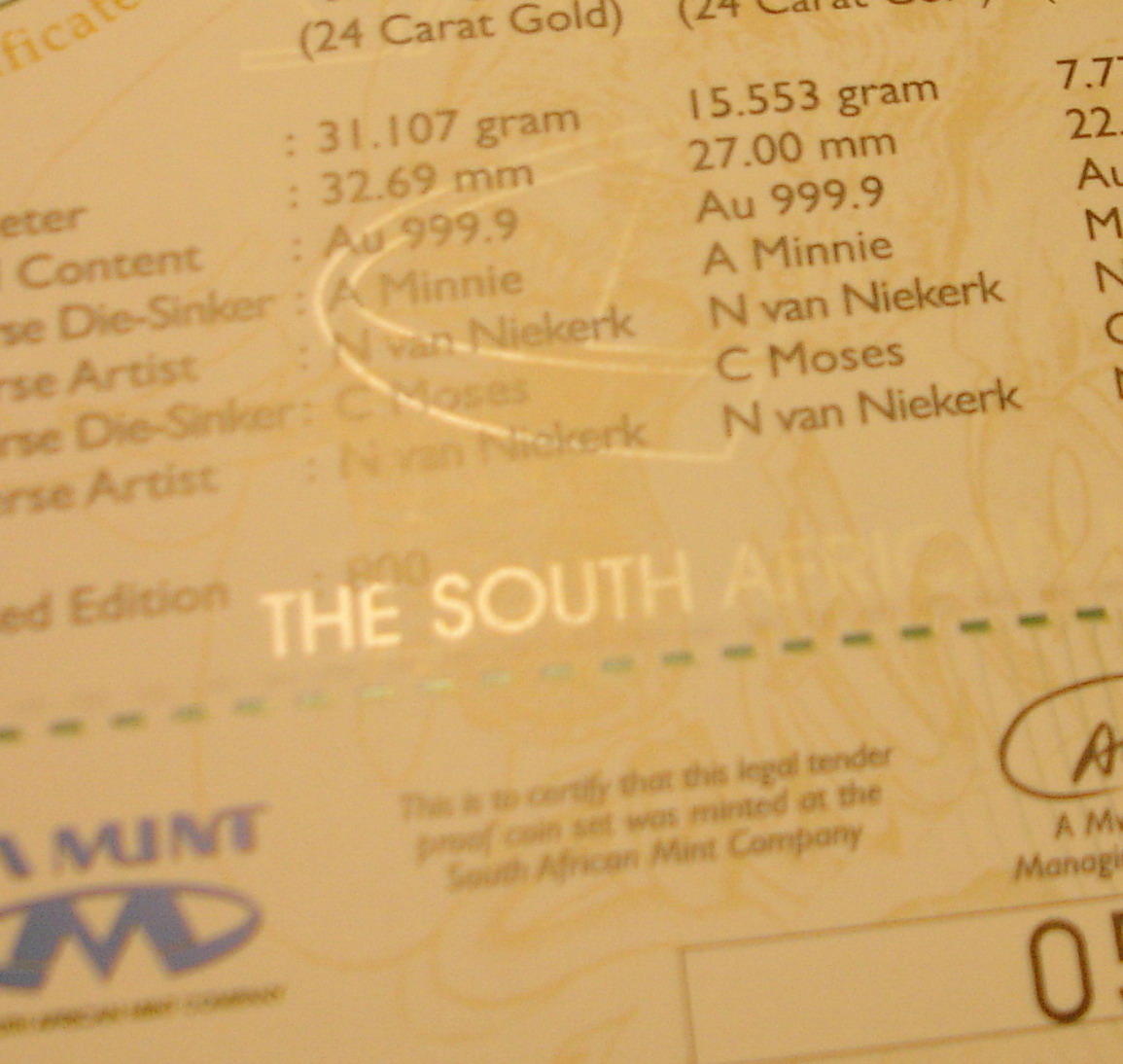 hier ein Auszug aus dem statement der SA Mint: