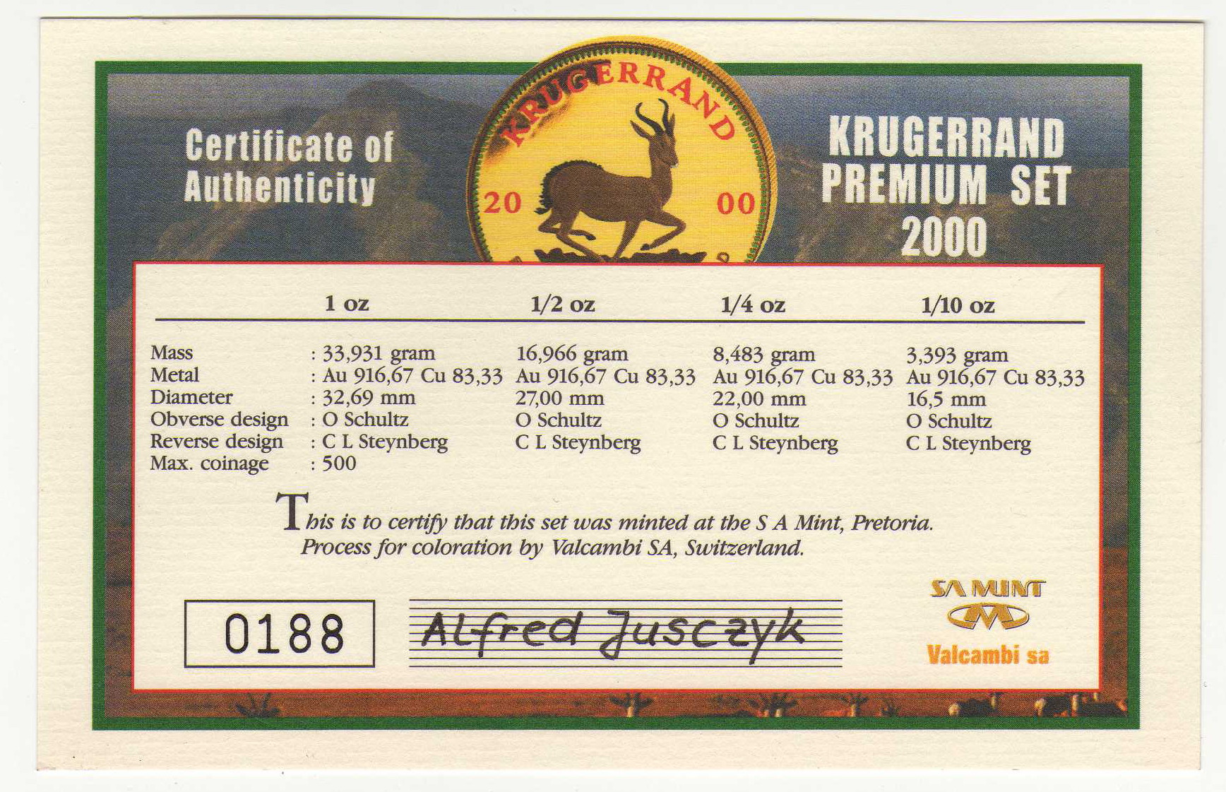 If my memory serves me correctly, they could only buy single coins from another dealer because we did not have any more Prestige (wooden boxes) sets left from that year's mintage. The same year, he also illegally enameled some Krugerrands (incorrectly I must add). Our South African laws state that we may not deface a legal tender coin in any way. So it was soon as these incidents that we began to cut ties with Emporium.