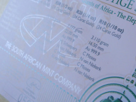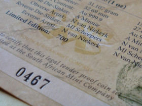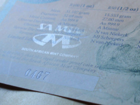 Hier mal ein neues original SA Mint Zertifikat mit WASSERZEICHEN so wie es seit einiger Zeit, seit ca. 2002, verwendet werden,