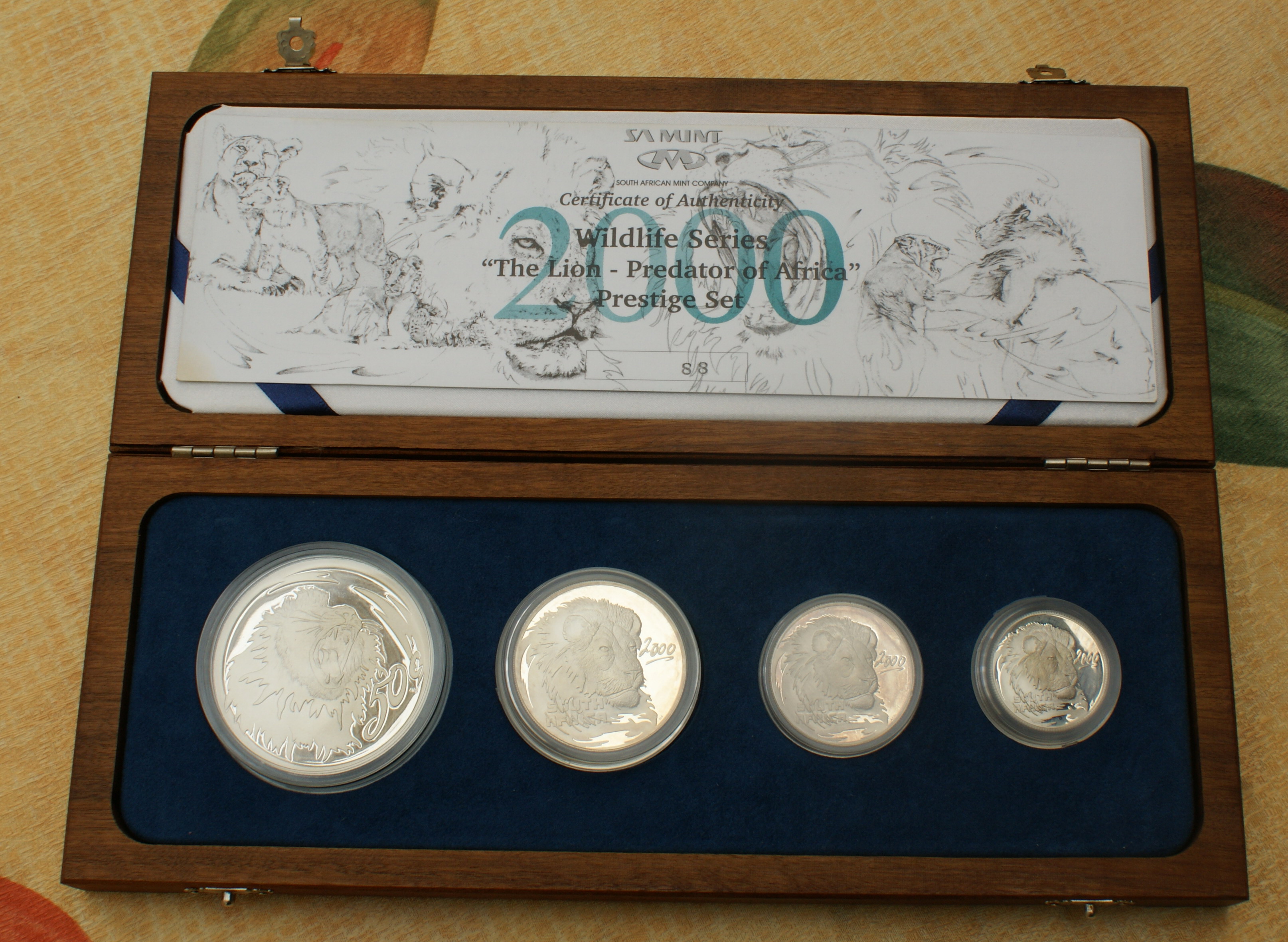 Im Gegensatz zum 2000 Lion Prestige Set in der wooden box Auflage 236 gibt es noch das 2000 Lion Proof Set mit Auflage 1.140 Sets,