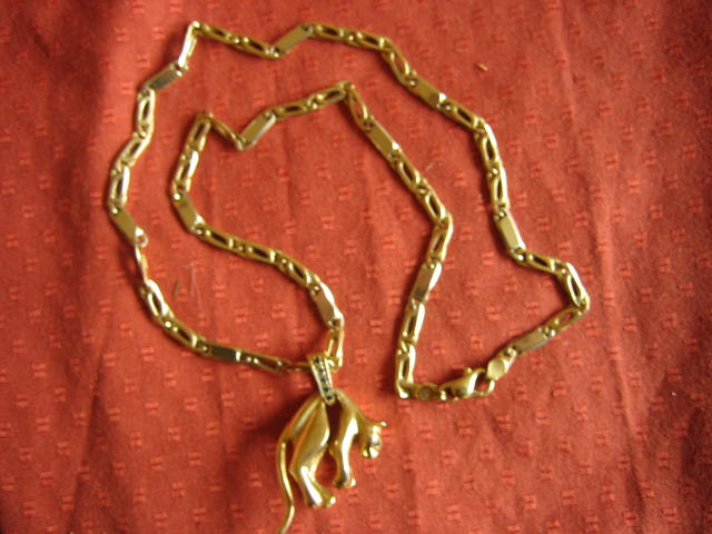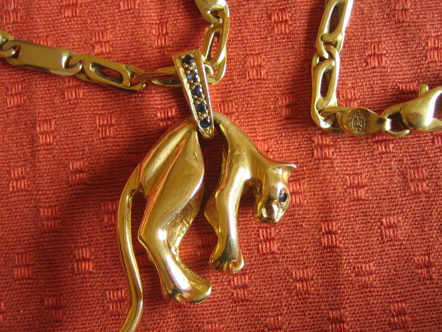 1.Kette mit Anhänger als Panther mit blauen Steinchen.