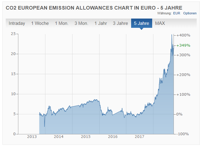 3) Die Emissionen von CERs ist fast zum erliegen gekommen (seit 2017 sogut wie kein Handel mehr)