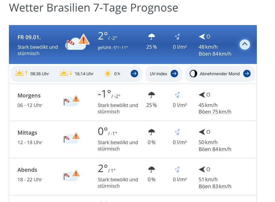 In Brasilien ist es auch recht frisch...