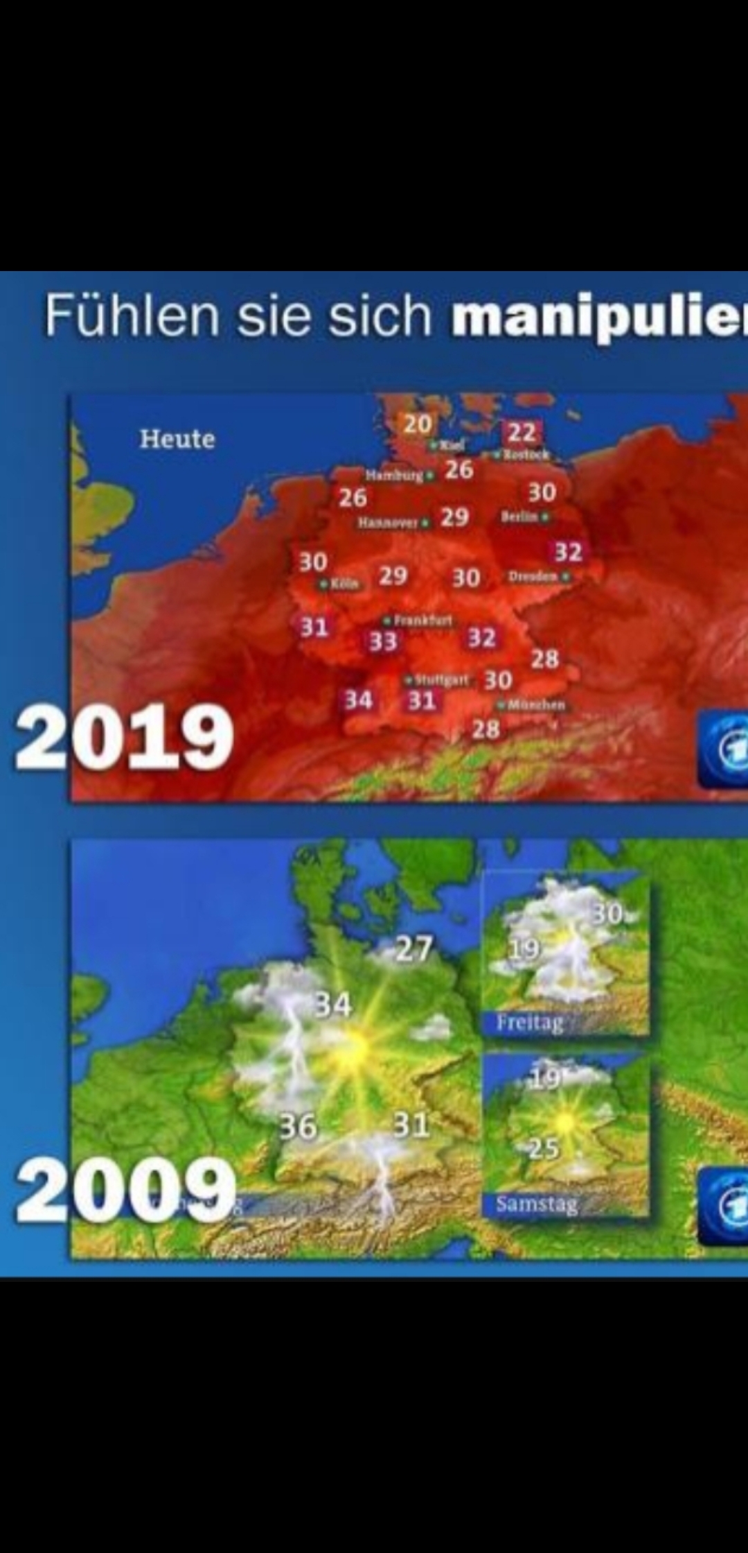 Hahahahaha..... ich musste erst grübeln, bis ich es sah.... 2009 heisser als 2019... einfach den roten Schleier drübergelegt. Sehr gut !