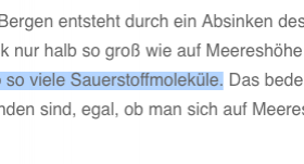 Was ändert das denn an der Tatsache, dass der Sauerstoffgehalt in dieser Höhe pro Kubikliter Luft effektiv aber lediglich einem Bruchteil davon gleichkommt, bzw. effektiv weniger Sauerstoffmoleküle pro Kubikliter Luft zur Verfügung stehen?