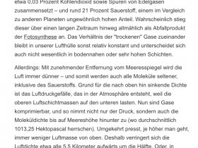 Und wenn in zunehmender Höhe durch den niedrigeren Luftdruck effektiv weniger Luftmoleküle (!!) (pro Kubikliter Luft) vorhanden sind als in Bodennähe, ist dieser Aspekt ein weiterer, der diese Theorie unwahrscheinlicher macht. (Des Weiteren sollte man bedenken, dass Sauerstoff wesentlich leichter ist als CO2!)