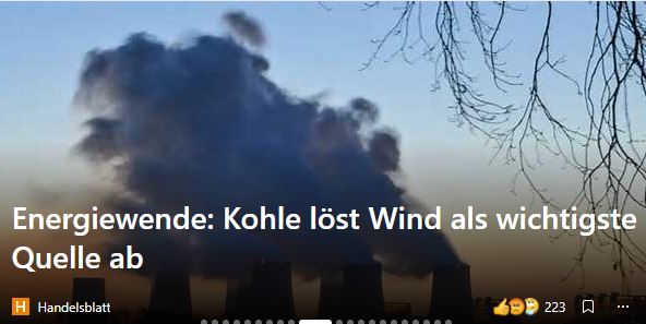 Moin,so sieht die Realität aus. Bald wird aus einem windschwachen Frühjahr ein kräftiger Importzuwachs von Kohle-u. Atomstrom aus dem Ausland, damit hier im Lande noch die umweltfreundlichen E-Autos und Wärmepumpen laufen können