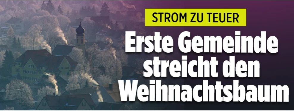 ZitatJetzt schlägt die Energiekrise sogar aufs Weihnachtsfest durch. Die erste Gemeinde in Deutschland verzichtet auf das Aufstellen eines geschmückten Weihnachtsbaums!