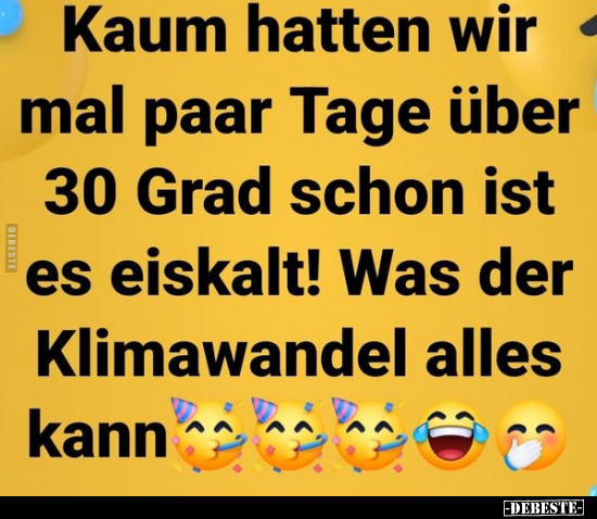 Ernsthaft... es hatte bei uns bis Ende April Frost / bzw. einstellige Temperaturen und jetzt geht es schon wieder Mitte September los mit der Einstelligkeit... 4 Monate warm und dann wieder den Rest ziemlich kalt....also es ist dann wohl ein Wandel und keine Erderwärmung wegen den Treibhausgasen mehr...