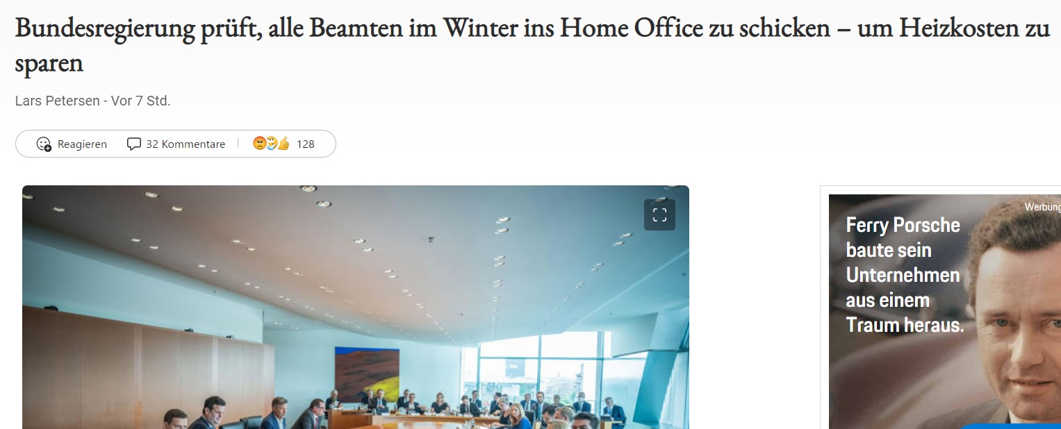 Zu Hause schläft es sich am besten...Wie mehrere Insider bestätigen, wurde vor kurzem bei einer internen Runde der Abteilungsleiter, die für die Verwaltung eines Bundesministeriums zuständig sind, unter anderem eine Home-Office-Pflicht für Beamte und Angestellte ins Spiel gebracht. Demnach sollten alle Mitarbeiter im Winter zuhause arbeiten, so der Vorschlag.