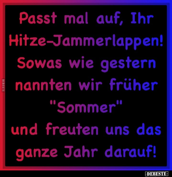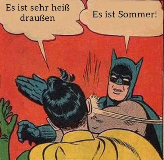 Mein Thermometer sagt mir 31,5 Grad, über der erwärmten Straße sind es 34, nach 15-20 Minuten in der Sonne 38. Der Computer meldet 36 bzw. 35 Grad.Und die Witzshow, wie so oft, vorne dabei.