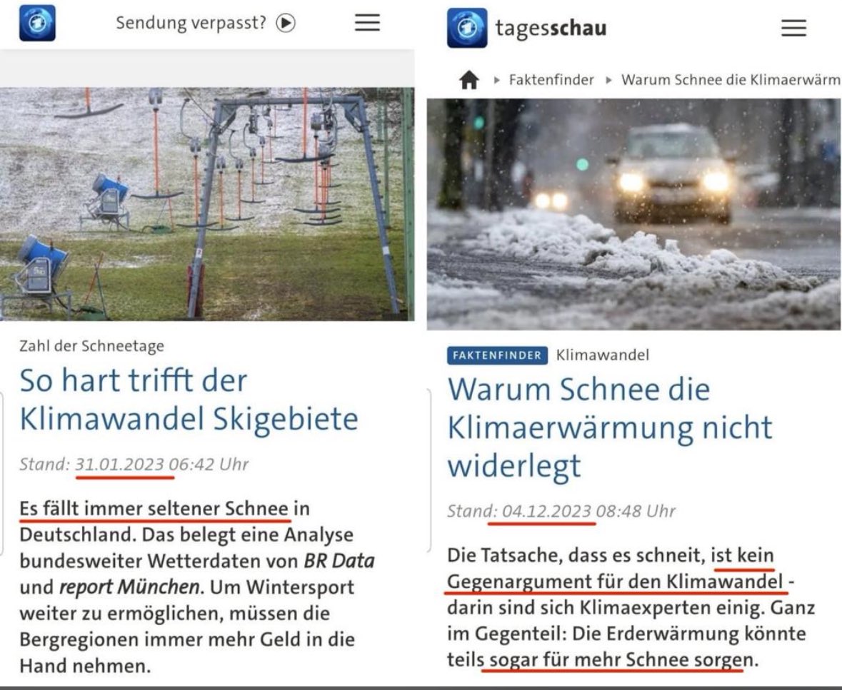 Das Gegenteil ist richtig, sagen Experten. Der Schnee sei vielmehr ein Zeichen für den Klimawandel, sagt etwa Gudrun Mühlbacher vom Deutschen Wetterdienst im Faktencheck der Tagesschau. Der Schnee werde seltener, wenn es schneit, dann aber massiv. Ein Grund: Durch die Klimaerwärmung regnet es vor allem im Herbst und im Winter mehr. Der komplett verregnete November bestätigte es.