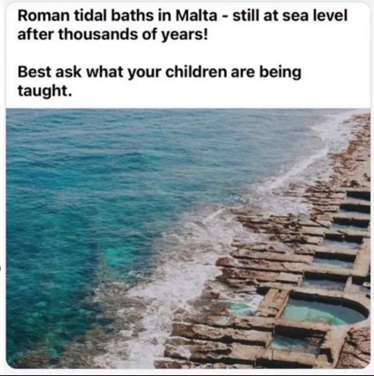 @wideawake_media Catastrophic sea level rise. These Roman baths were built at sea level just 2500 years ago. And today, they are still at sea level. Scary shit.