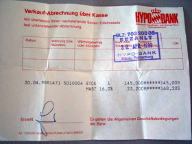 Interessant ist, das die Rechnung auch noch vorliegt. Am 30.04.1998 hat jemand 168,20 DM oder 86 Euro dafür bezahlt.