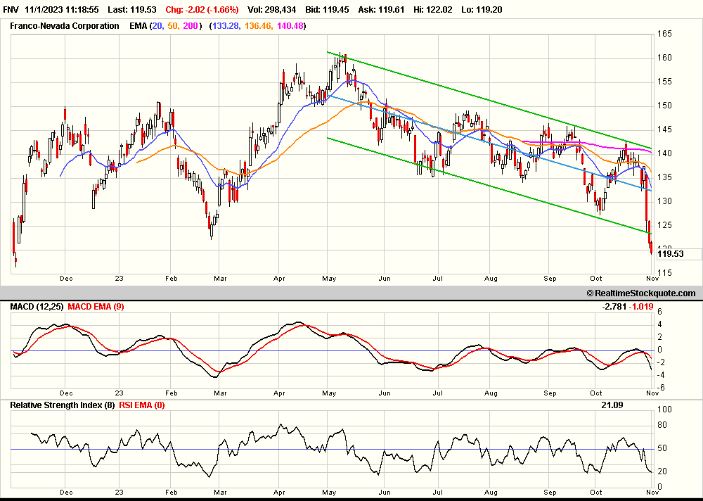 Einige Charts von FNV zeigen an, daß FNV schon weit vor den momentanen Unsicherheiten schwächelte; Im angehängten Chart mit stabilem Abwärtstrend.Auch vs den beiden großen Peers und dem XAU wurde FNV leichter....
