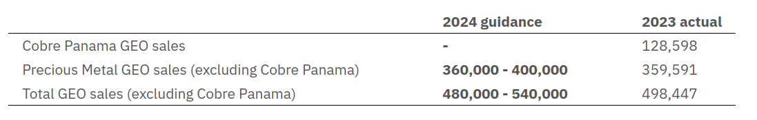 "TORONTO, 5. März 2024 /CNW/ - "Ende 2023 wurden wir durch den beispiellosen Produktionsstopp bei Cobre Panama herausgefordert. Wir sind zuversichtlich, dass die Probleme gelöst werden können, obwohl wir einen vorsichtigen Ansatz für den Buchwert der Anlage gewählt haben", sagte Paul Brink, CEO. "Trotz der Probleme bei Cobre Panama bleibt unser Geschäft robust und wir profitieren weiterhin von einem langfristigen, diversifizierten Portfolio. Wir beendeten das Jahr schuldenfrei und verfügten über liquide Mittel in Höhe von 1,4 Milliarden US-Dollar. Der Rest unseres Geschäfts entwickelte sich im Jahr 2023 gut und wird voraussichtlich im Jahr 2024 mit Beiträgen aus der Fertigstellung der Goldminen Tocantinzinho, Greenstone und Salares Norte wachsen. Unsere Wachstumsaussichten bis 2028 werden von zahlreichen neuen Minen und Minenerweiterungen angetrieben. Mit einem verfügbaren Kapital von 2,4 Mrd. $ sind wir gut für attraktive Akquisitionen in einem Umfeld positioniert, in dem viele Projektentwickler unter Kapitalbeschränkungen leiden."---