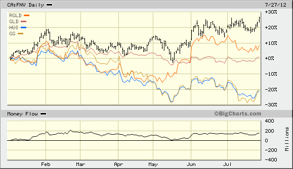 Der Vergleich zum großen Konkurrenten RGLD, aber auch zu Goldcorp, HUI und AUCH vs Gold spricht Bände.
