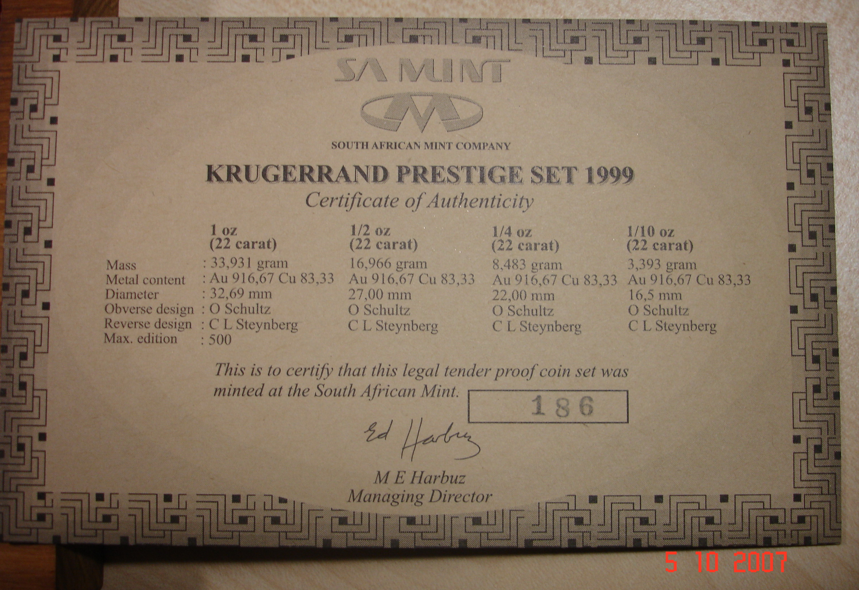 auch noch das Krugerrand CENTRUY Edition Set 1999
