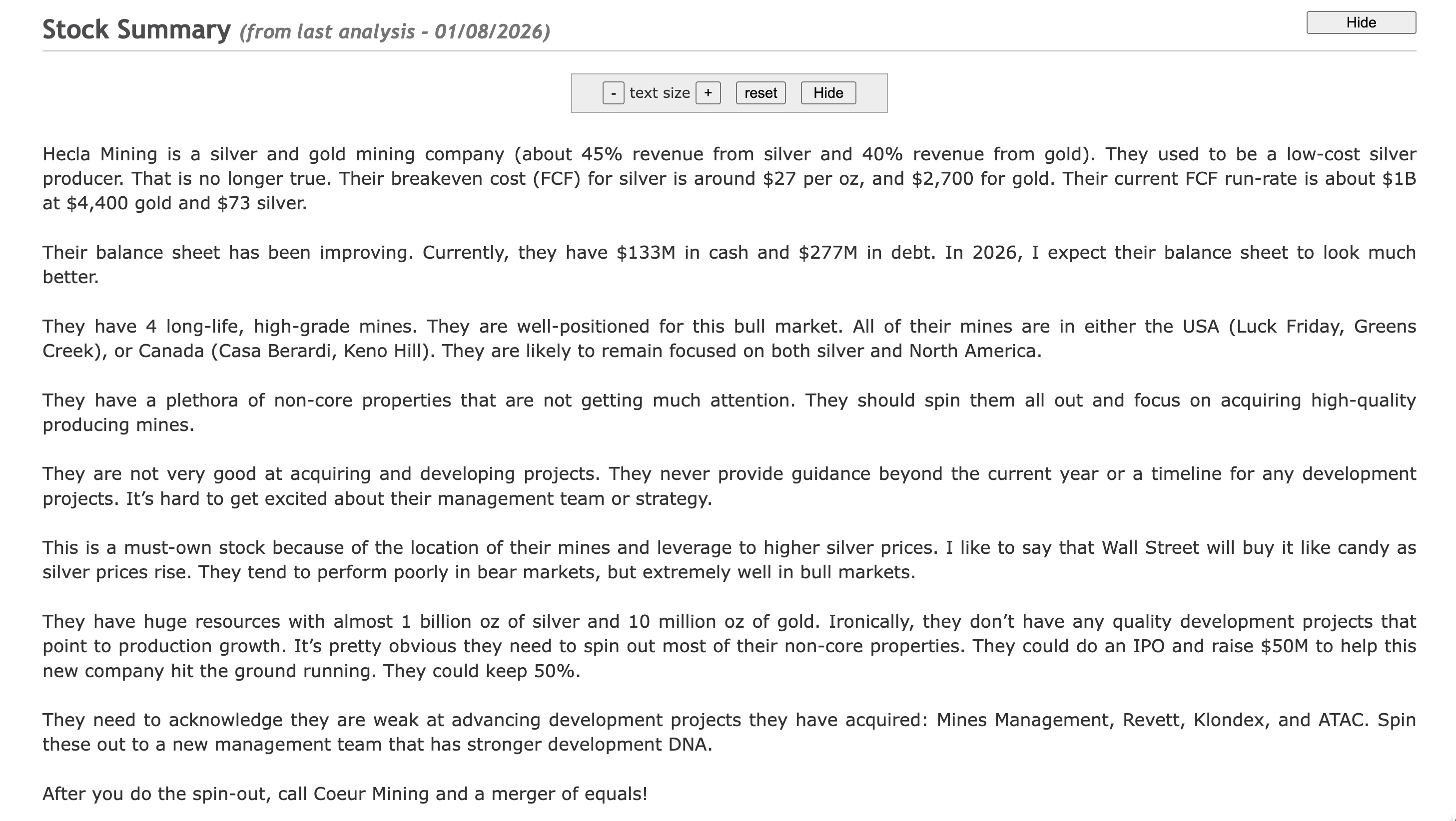 Hecla ist mein erster Wert mit einem Gewinn von über 1000% seit Kauf.
