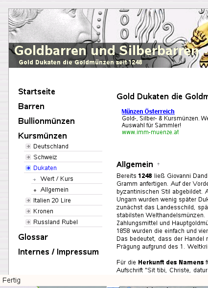 • Wenn du links im Seitenmenü auf Kursmünzen klickst, gelangst du zu den Schweizer und österreichischen Münzen...