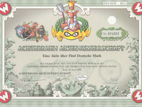 Für Investoren die mal sehen wollen wie die AKtie optisch aussieht in die sie investiert haben. Schöne Sammler und Deko Stücke, Ideal zum Rahmen und an die Wand hängen.
