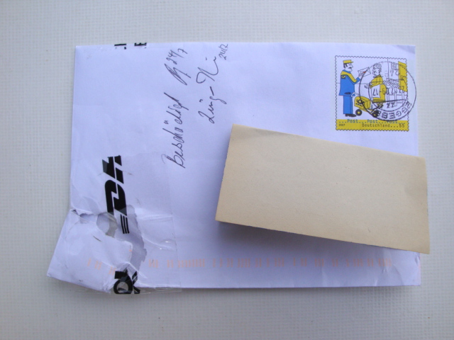 -die "klebung" mittels dhl banderole (ich kenne beschädigte briefe, die wurden von der post als "sendung beschädigt" gestempelt und für den weiterversand in eine transparente hülle eingelegt)