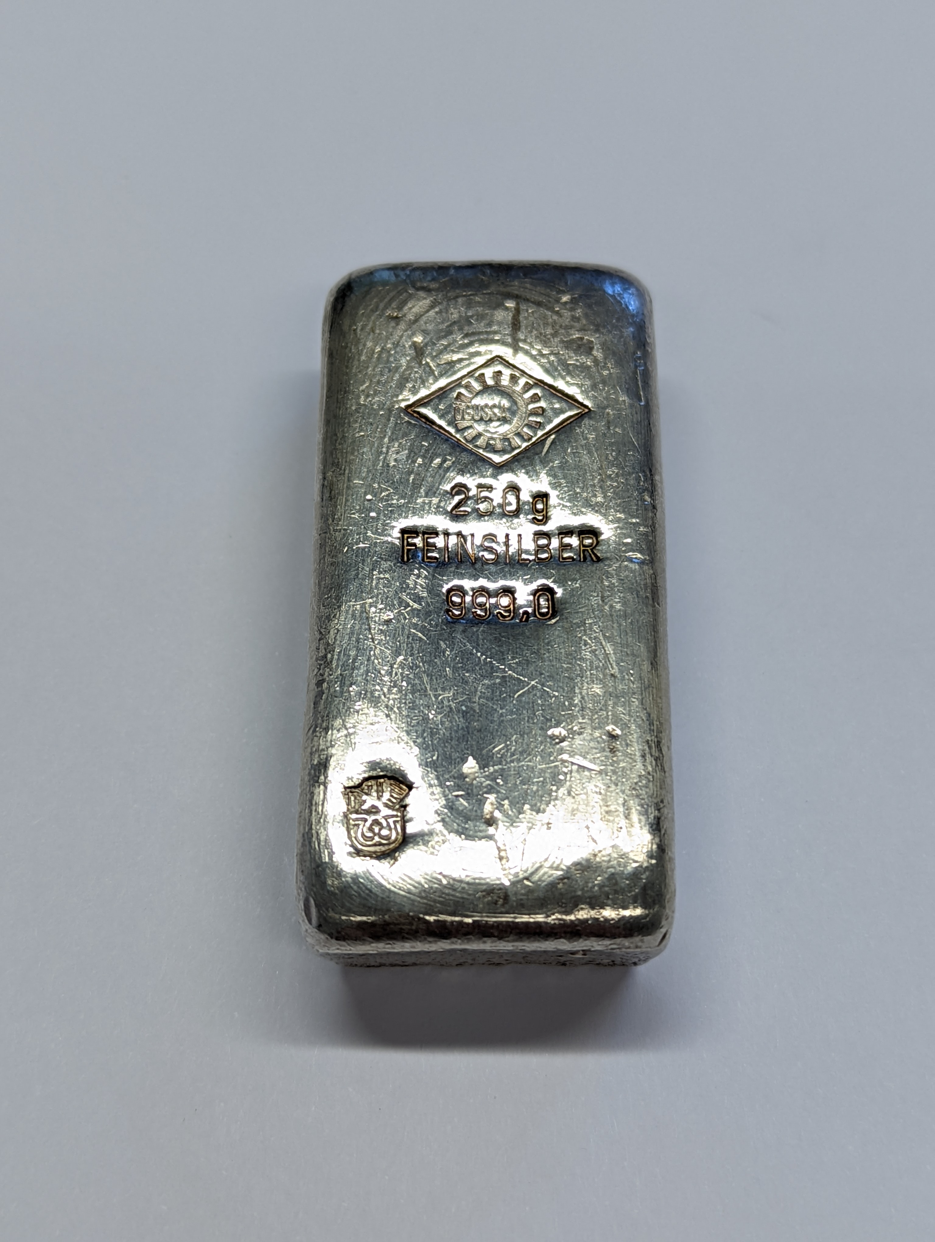 Ich habe einen 500g Silberbarren Toni Goetz ersteigert.