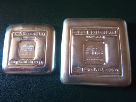 Die Degussa 40 Grämmer-Ronden -Medaillen-Rundbarren hingegen habbi relativ reichlich. Einer mit zusätzlichem Werbestempel.