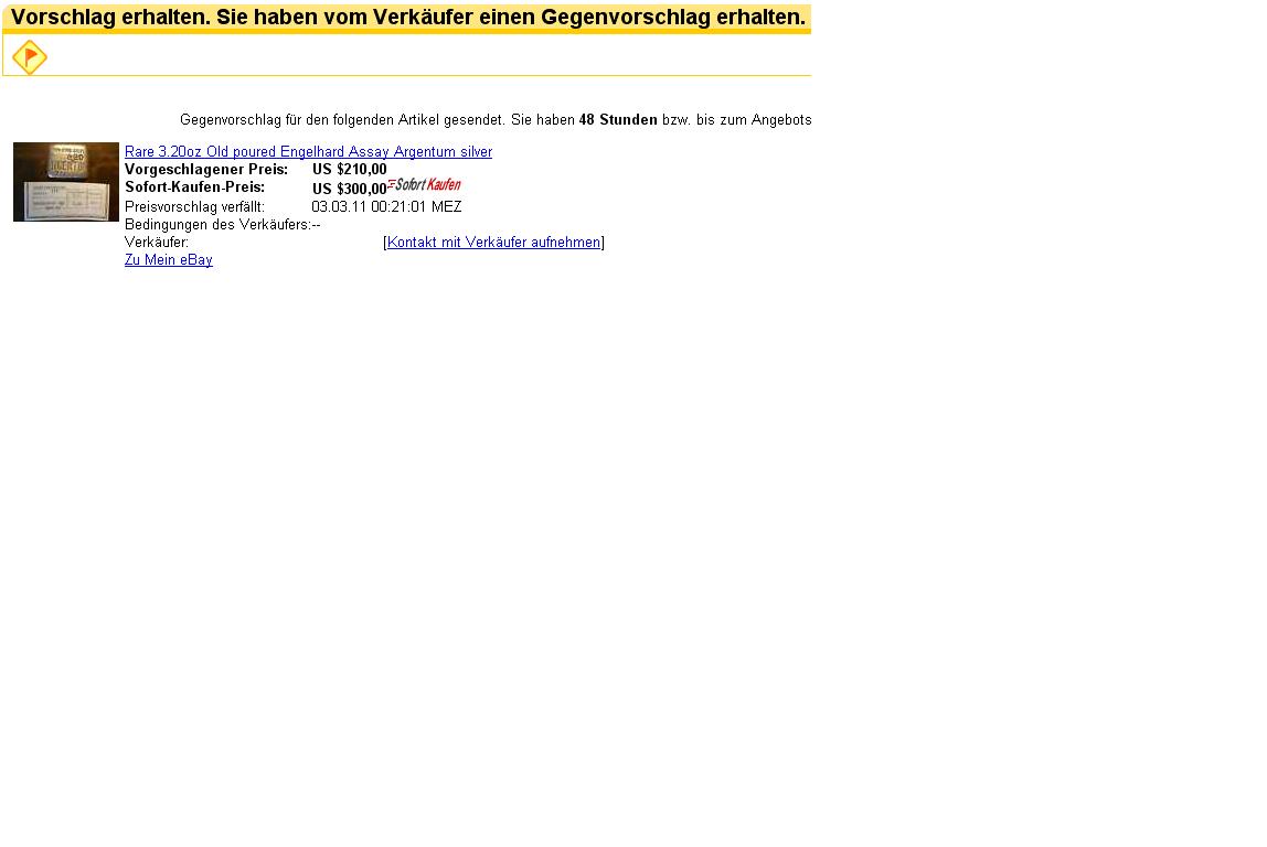 Am 24.01.11 ist nochmals ein zweiter - 1 Oz. AG Barren aus gleicher Quelle aufgetaucht....das Ergbnis beider Auktionen nochmals im direkten Vergleich s.u.