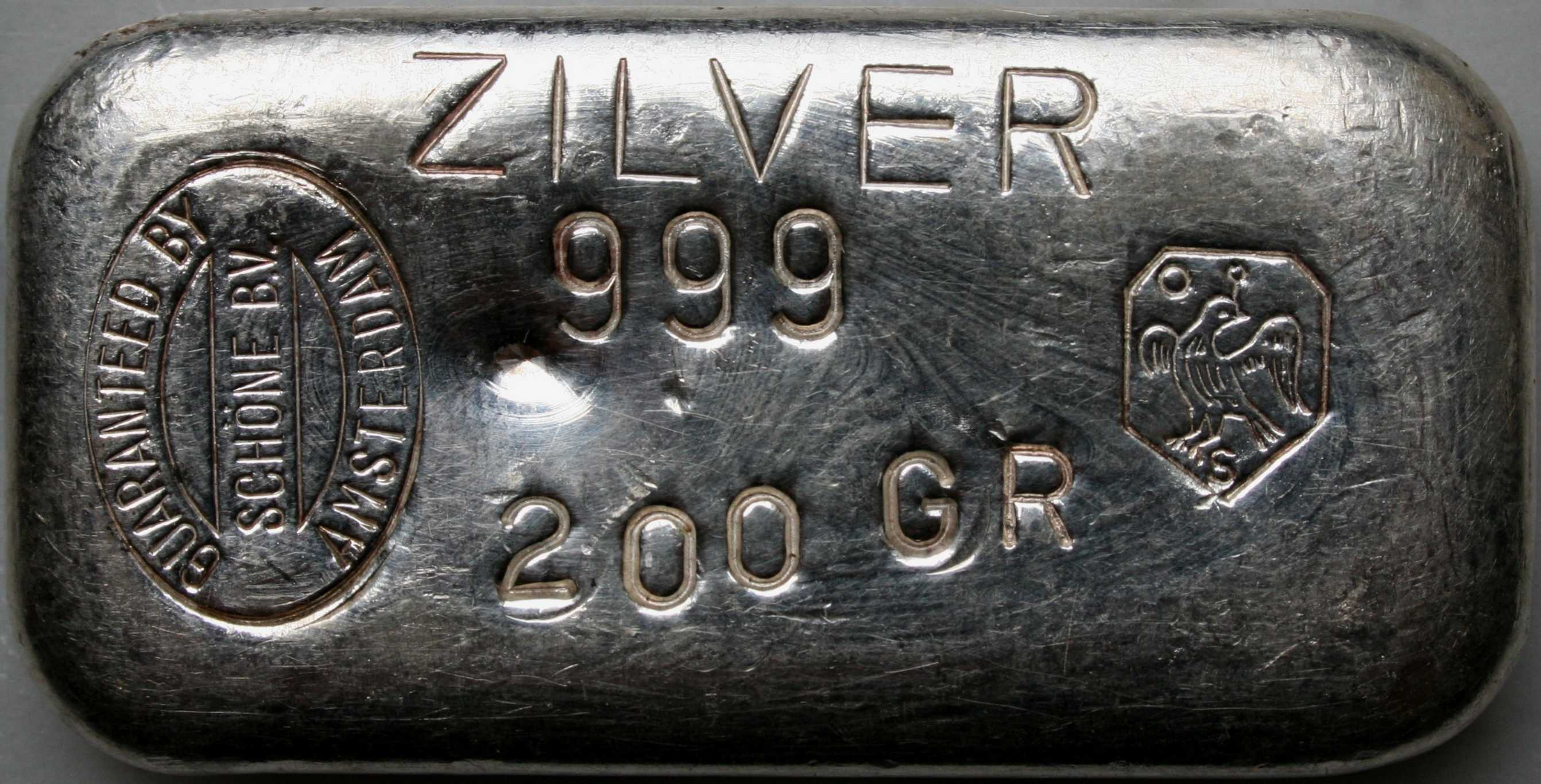 Neben dem hier im Barrenthread von GOLD-BOB vorgestellten 400 g-Exoten (zeige diesen hier ebenfalls) existiert tatsächlich ein weiterer Silberbarren mit ungewöhnlichem Gewicht, nämlich 200 g. GOLD-BOB und ich haben neulich erfahren, dass sich bereits erste holländische Schöne-Sammler auf der Raritäten-Jagd befinden. :D