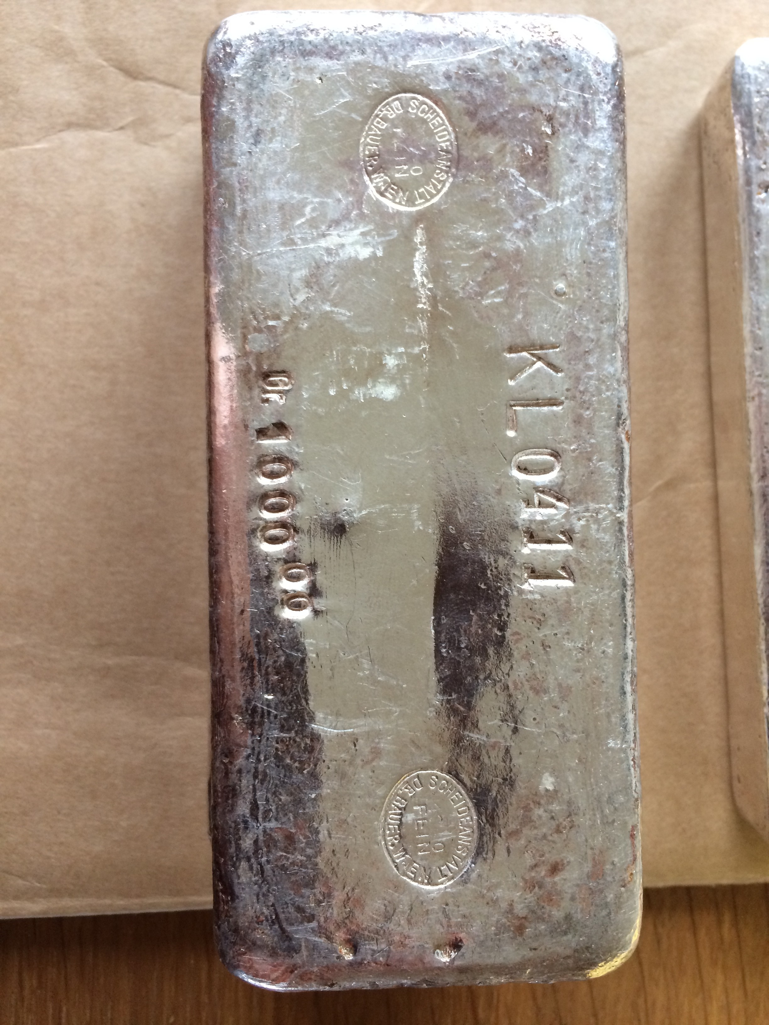Ein barren hat ein Stempel mit Platinaffinerie (leider etwas doppeltgeprägt)und die andere 4 Scheideanstalt. -
