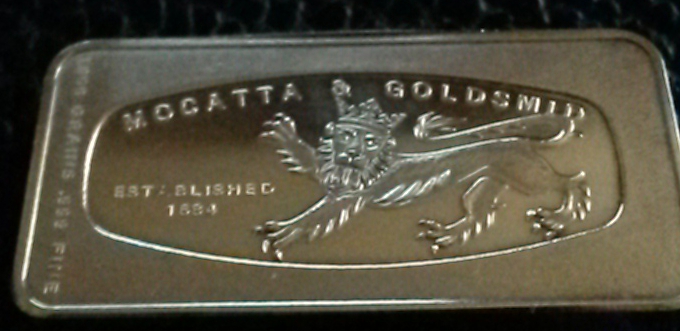 1000 Grain (ca. 2,08 oz) Mocatta & Goldsmid Silberbarren